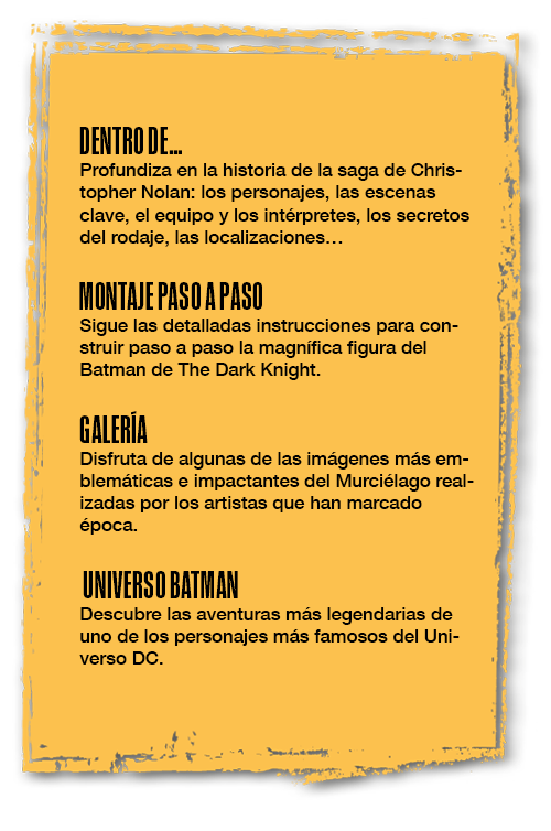 Construye por primera vez la figura de Batman, el Caballero Oscuro, con la réplica exacta del traje que aparece en la película The Dark Knight, y adéntrate en el Universo del Superhéroe de DC.