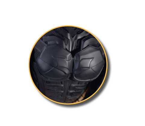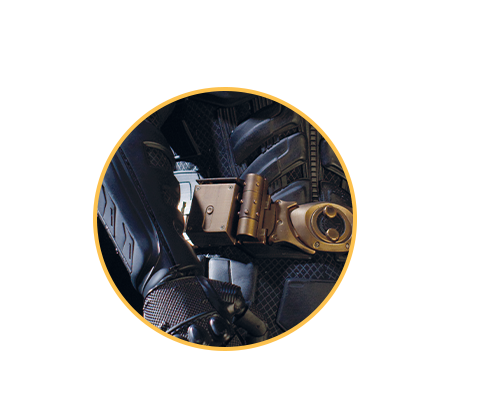 No puede faltar el símbolo de Batman sobre el área pectoral, donde destaca el increíble detalle de las placas acorazadas